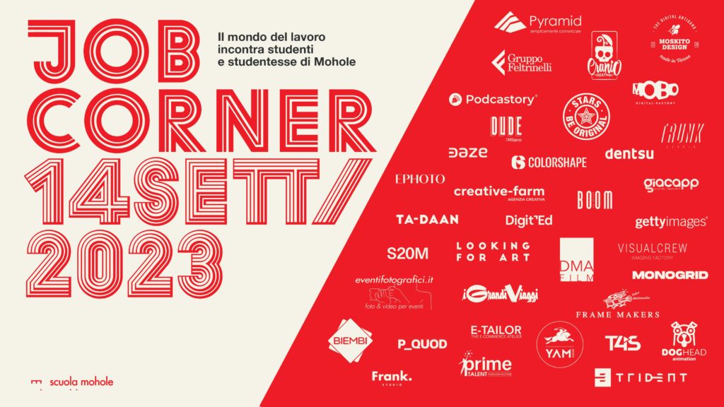 Mohole Job Corner ospita agenzie di comunicazione e media studio, aziende operanti nei settori moda e turismo, talent agency, software house, case di produzione, social network, agenzie fotografiche, istituti di formazione, agenzie di casting, technology provider, brand per arti visive, onlus e fondazioni.